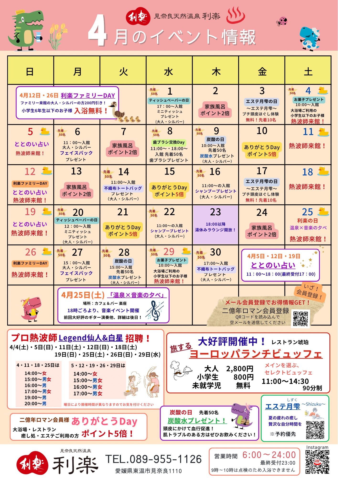 愛媛の温泉ならジュラシック・スパ&リゾート『見奈良天然温泉 利楽』へ