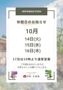 ご不便をおかけいたしますが、何卒ご理解とご協力をお願い申し上げます。休館日明けの17日は、10:00より通常営業いたします。