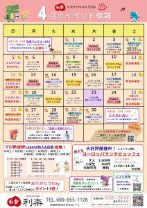毎日なにかがある利楽は、4月もたくさんのイベントでお待ちしております。