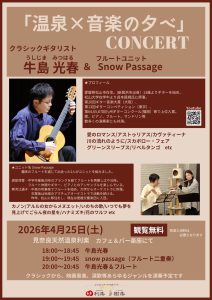 日頃より、見奈良天然温泉利楽をご利用いただき誠にありがとうございます。4月イベントカレンダーでお知らせしておりました「音楽×温泉の夕べ」詳細が決定いたしました!
